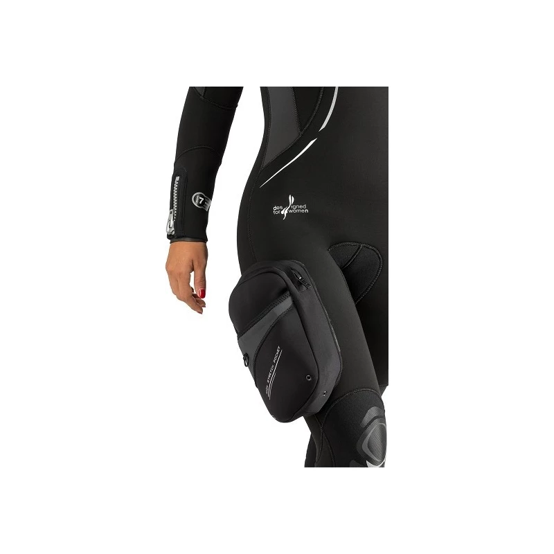 - Etanchéité des poignets, des chevilles et du cou grâce à des micromuffles de néoprène lisse intérieur de 5 mm : un système efficace, simple et résistant.