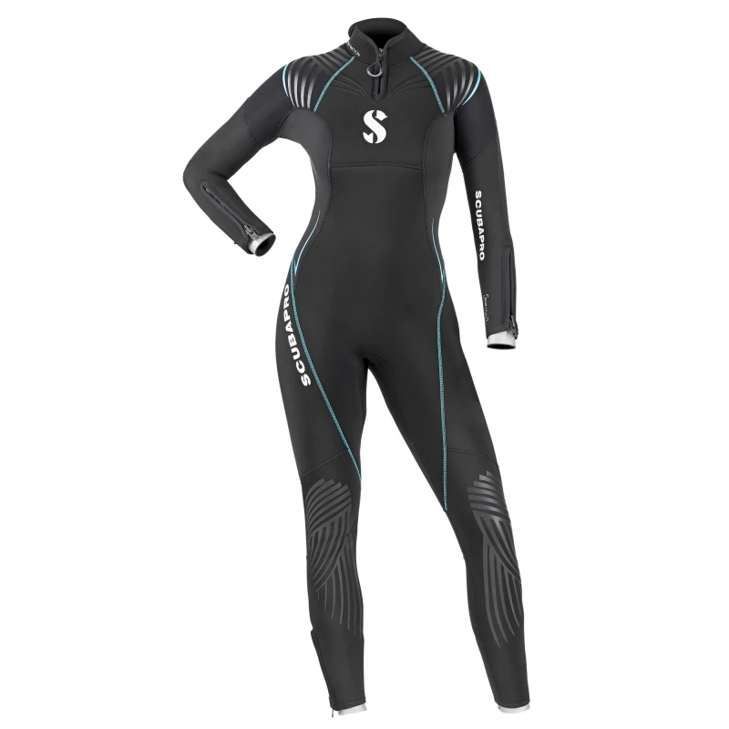 - Une courte fermeture à glissière au niveau du cou améliore le confort au-dessus de la poitrine, et élimine ainsi le besoin de se déshabiller entre chaque plongée.