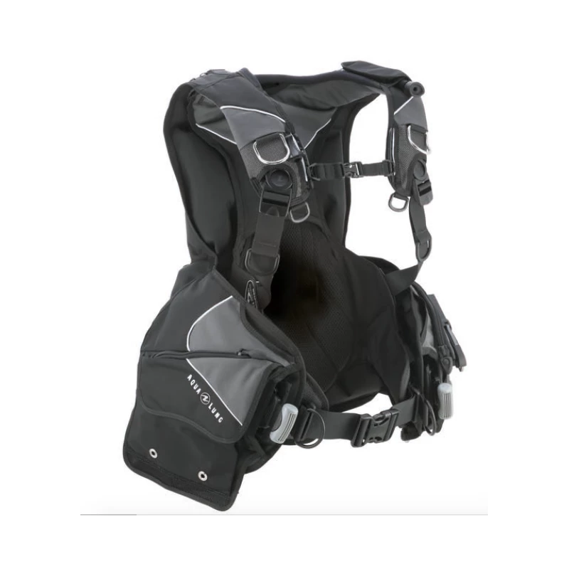 - Le système de harnais Wrapture™ associé aux boucles pivotantes d’épaule (breveté) et à un mini support lombaire adapté, offrent confort et stabilité tout en prévenant le phénomène de bascule vers l’arrière en surface.