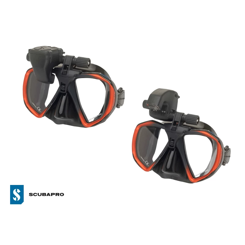 - Le Galileo HUD est compatible avec de nombreux masques SCUBAPRO, tels que les Spectra, Spectra Mini, Zoom EVO (support de masque spécial), Synergy Twin, Synergy 2 Twin, Ecco Mask, Vibe 2, Futura 1 et Pro Ear.