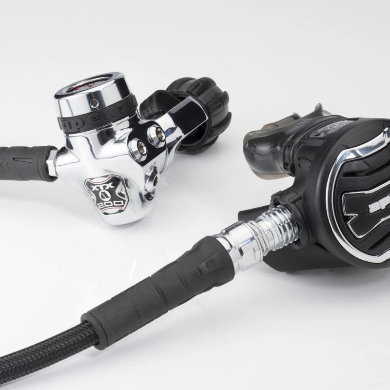 Il permet de modifier l’injection grâce à un volet de venturi et bénéficie d’un bouton de réglage de sensibilité. Le premier étage est équipé d’une chambre sèche qui rend le détendeur particulièrement adapté à la plongée en eaux froides. Toutes les sorties sont parfaitement placées et assurent un positionnement idéal des flexibles. L’ XTX 200 offre un confort respiratoire exceptionnel dans toutes les conditions et