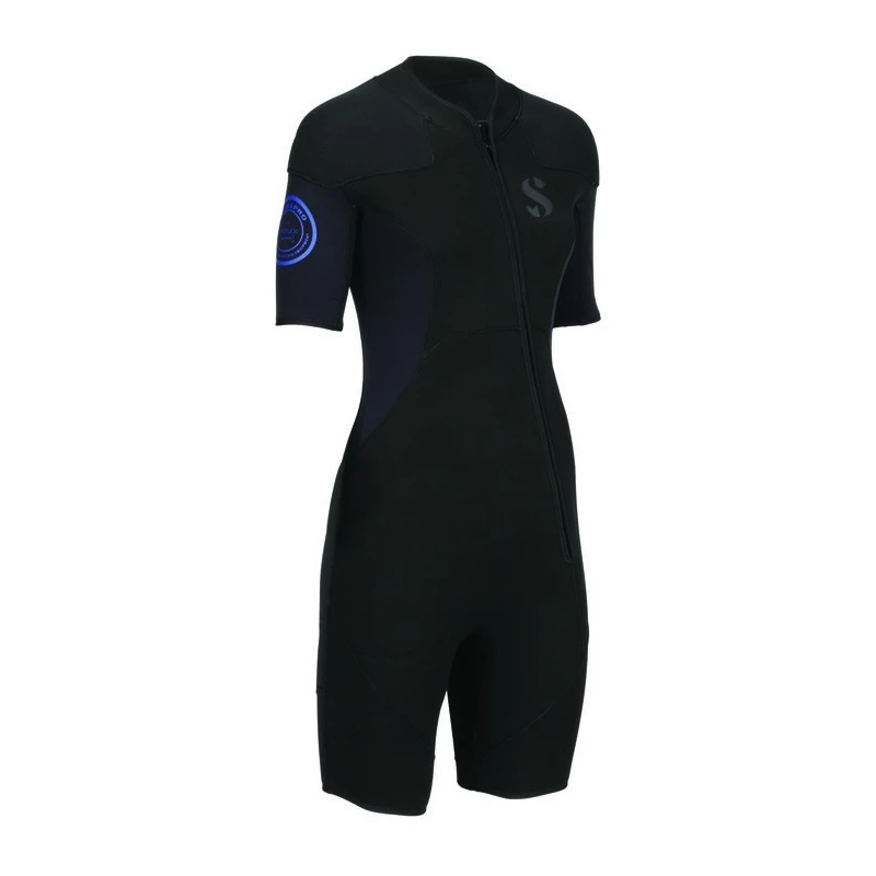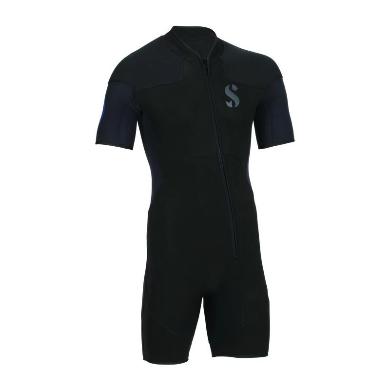 s. L’ajout de textile élastique à l’extérieur, au niveau des bras et des aisselles, facilite grandement l’enfilage et le retrait tout en assurant un confort et une liberté de mouvements accrus dans l’eau, ce qui est très appréciable pour les plongeurs débutants. En outre, et puisqu’il est conçu selon le « Pure Design Concept », il emploie moins de coutures et de panneaux pour une plus grande souplesse. Fabriqué en néoprène X-Foam et doublé d’un polyester robuste résistant au chlore et aux UV, ce shorty est aussi durable que confortable. Il est également réversible et peut ainsi être retourné après une plongée, puis rincé et désinfecté avant d’être immédiatement réutilisé. Il convient ainsi parfaitement à une utilisation répétée pour les centres de plongée et de location. S’associe avec la combinaison monopiece a cagoule Oneflex 7 mm. Conçu en néoprène X-Foam écologique et très souple de 4 mm d’épaisseur pour une liberté de mouvement et un confort optimaux. Doublé 2 faces en polyester pour une excellente résistance aux UV et au chlore et une longévité considérablement accrue, même en cas d’utilisation intensive. La coupe « triathlon » est pourvue de panneaux plus larges sous les aisselles et dans le dos pour une excellente liberté de mouvement des bras et des épaules. Le « Pure Design Concept » garantit une flexibilité maximale grâce à un nombre réduit de coutures et de panneaux. Sa réversibilité permet de le rincer, de le désinfecter et d’immédiatement le réutiliser. Pourvue d’un curseur en laiton, sa fermeture à glissière frontale diagonale YKK est résistante et simple d’utilisation, et facilite l’habillage et le déshabillage. Le matériau anti-abrasion utilisé sur les épaules et la zone d’assise est agréable pour le plongeur et protège le shorty des marques et éraflures. Conçue en X-Foam, un néoprène à base de calcaire conforme aux normes strictes d’utilisation des HAP ainsi qu’aux règlements REACH. Assemblé à l’aide de colle sans solvant suivant un procédé 100 % vert. Nouveau logo rond sur le bras droit/l’épaule droite avec une couleur et une lettre par taille pour une identification aisée.